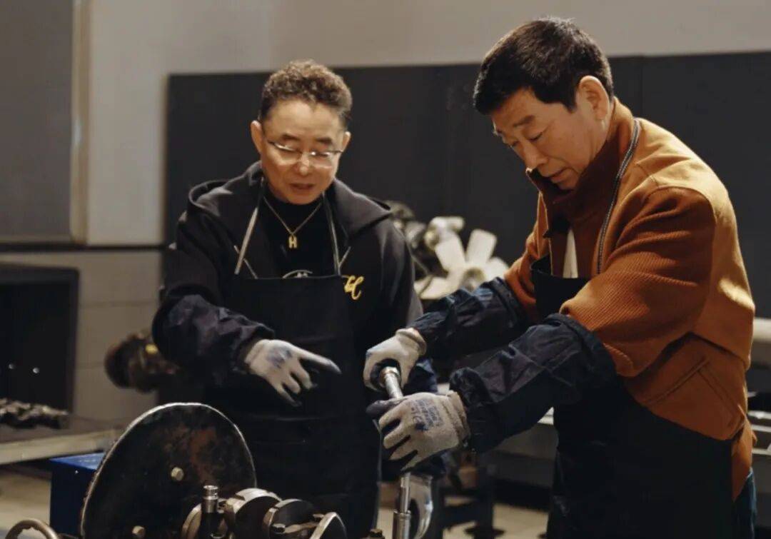 視頻中,魏建軍穿上勞保大褂,一邊和修復技師討論手工裝配中的難點,一邊俯身在發動機旁動手查看,擰螺絲、做檢查、反復確認狀態。他提出的問題都緊扣具體部件和修復步驟,能看出對這些機械細節并不陌生,很多判斷更像是長期和汽車打交道后形成的直覺。